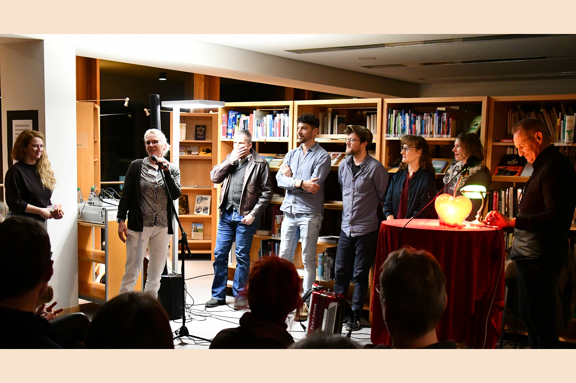 Spät geworden ist es auch bei der Lesung in der Stadtbücherei – ein rundum gelungener Abend der Get Shorties Lesebühne und der Band „Different Paul“ vor einem begeisterten Gerlinger Publikum. Vor der Lesung und in der Pause sorgte die Café-Bar Maraz mit Getränken für Erfrischung und die Autorinnen und Autoren signierten anschließend ihre Bücher.